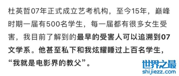这位是赵韦弦曾经的艺考老师杜英哲,他毕业于北电,是一所艺考培训学校的校长,而这所培训学校,可以说是国内数一数二的编导类培训学校,很多北电、中戏的学子都曾在这所学校培训过。