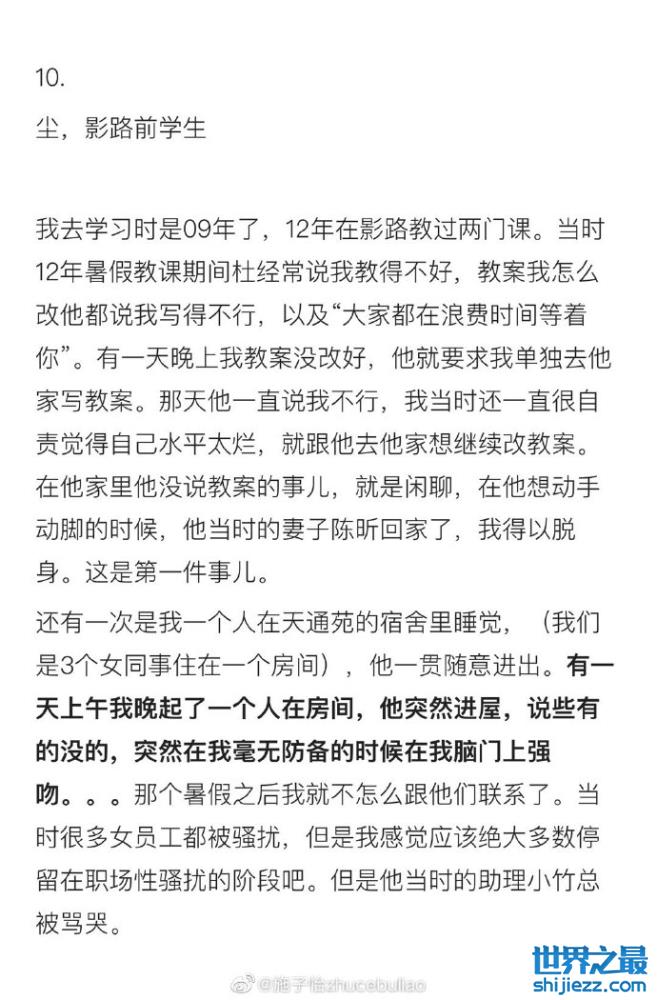 从受害者的叙述这可以看出,杜英哲经常以辅导艺考等名义让女生单独赴会外出,借此制造机会向对方实施性骚扰。
