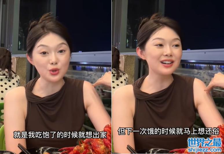 吃饱喝足之后,晚晚还对着镜头表示,自己吃饱了就会想出家,饿了就想要还俗,逗得自己哈哈大笑。