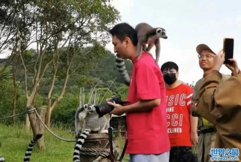 甚至,他还让环尾狐猴骑在自己的脖子上,被猴子“拿捏”了的校长,一动也不动,这个画面莫名和谐又有点搞笑。