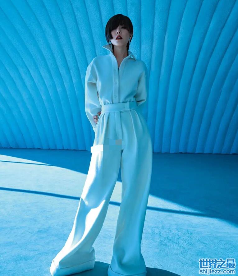 还有一套造型就比较的一言难尽了,照片中的曾黎身穿一套白色连体裤,裤子太长直接盖过了曾黎的脚,依旧搭配上那“别致”的超短发,遮住了她的眼眸,看起来毫无精神气,直接连她的气质也跟着遮下去了一半。