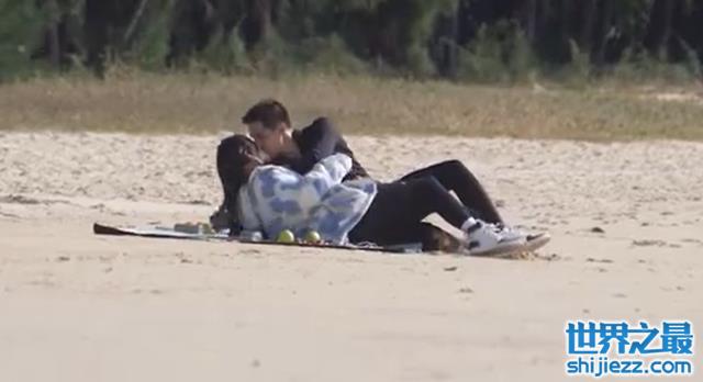 两人吻到动情之处,顺势侧躺在沙滩上,身体相贴,紧密搂抱在一起。从远处看真是让人足够脸红心跳呢,不知道接下来剧情会如何发展,但真是令人满满期待。