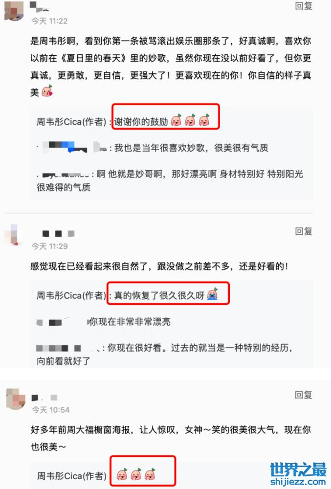 而网友们都也能理解,评论区也是出奇的温暖,都在鼓励着周韦彤,并夸赞周韦彤无论是以前还是现在,一直都很美。周韦彤也是特别热情的去回应着网友。