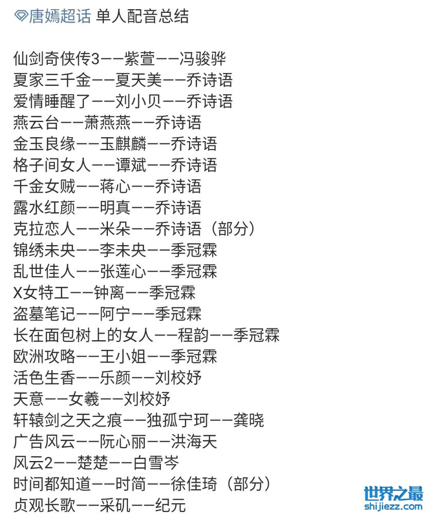其中配音最多的,就是古装剧了,演了21部古装,都是靠“声替”。在数量方面,远超上面4位女星。