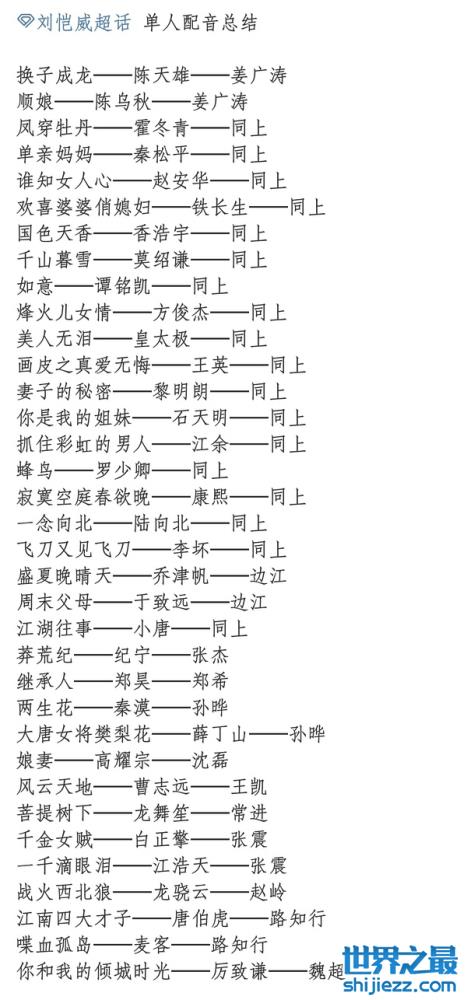 据不完全统计,不光是古装剧,刘恺威的作品里有35部戏都是配音。长长的一张配音名单,几乎涵盖了他所有有点名气的角色。