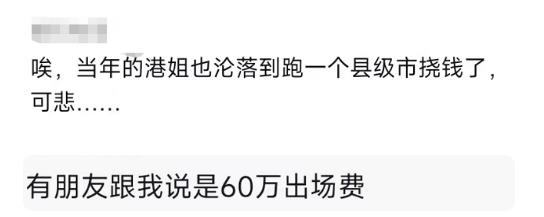 不过有许多网友认为洪欣毕竟是颇有名气的港星,却沦落到小县城里商演,也有一些网友觉得现在港星在内地赚钱太容易了,基本都是在商演走穴,而且出场费都挺高的。