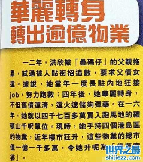 据悉,洪欣颇有投资头脑,投资了不少房产。