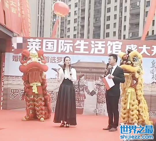 没过一会儿,洪欣就登台表演,但她所处的商演环境十分简陋,背景就是一个颜色鲜艳的广告牌,上面还写着“婚嫁、乔迁”等字样。