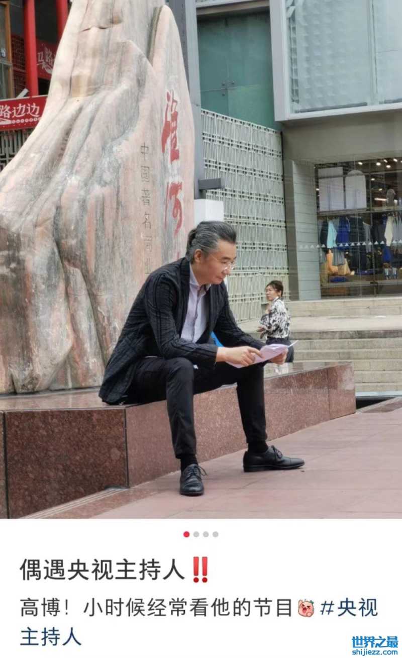 央视主持人高博被偶遇!头发花白显老态,穿西装坐地上十分接地气 ...
