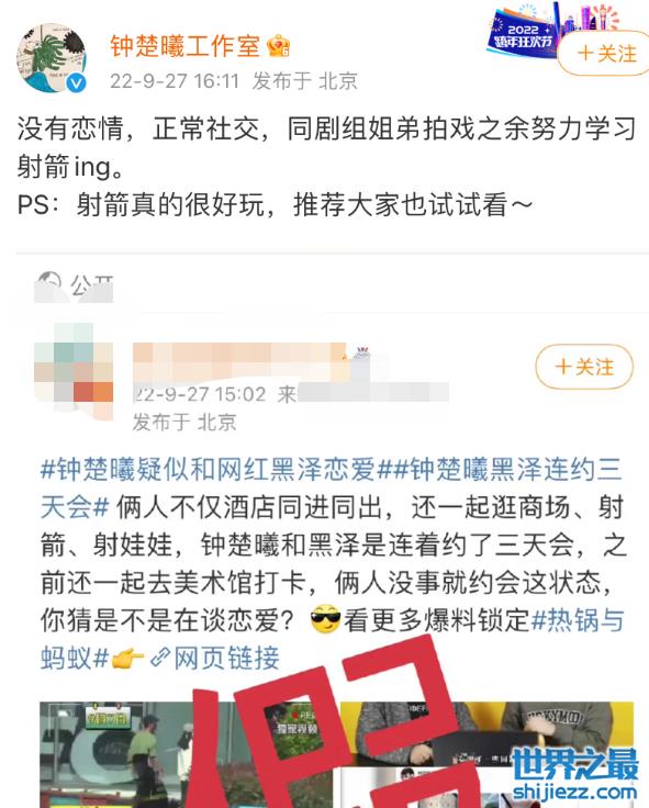 随着舆论的发酵,钟楚曦的工作室速度做出回应,表示两人只是正常的社交,也是同剧组姐弟拍戏之余互相探讨射箭技巧。