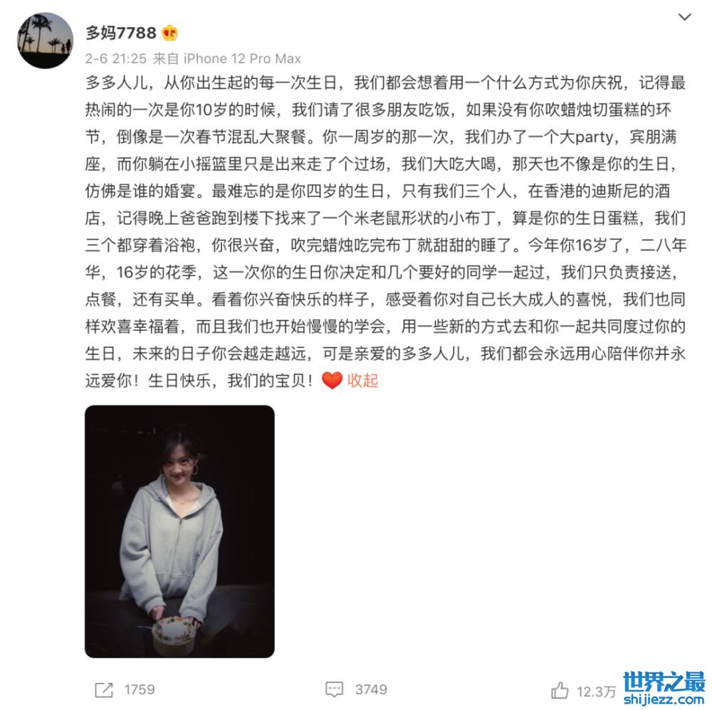 可是今年,与多多关注的热搜少了很多,她本人没有注册微博,而是选择了ins,她今年还晒照为妈妈庆生,还说想拥有父母同款爱情。