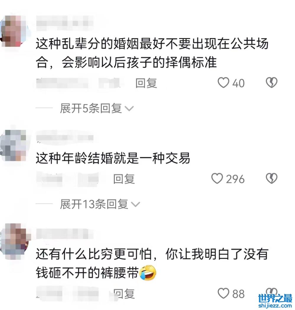 虽说真爱不分年纪,但年龄相差过大的感情,会是真的感情吗?借用《都挺好》中的一句话——“图你岁数大?图你不洗澡?”不过感情如饮水,冷暖自知,自己感到幸福就好。