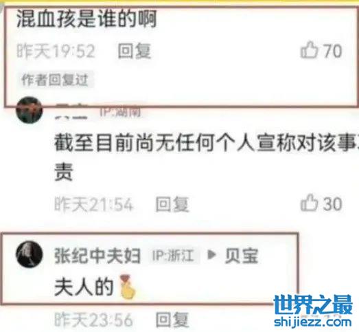 两人一共孕有3个孩子,但因大儿子的长相带有混血感,所以网友一直猜测大儿子的出身,有网友更是对张纪中发问,而张纪中说“孩子是夫人的。”。