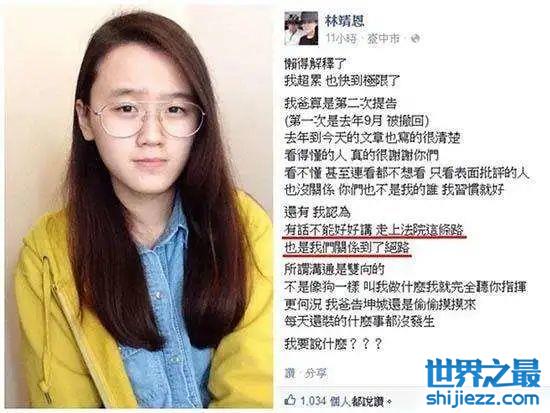 林父便将李坤城告上了法院,但林靖恩也在社交平台上吐槽自己的父亲,之后林靖恩为了李坤城与家人更是断绝了关系。