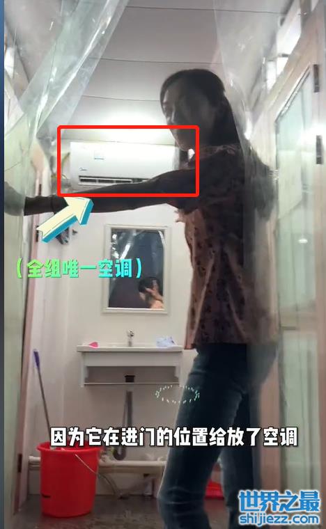 走入这辆厕所车,映入眼帘的是一个简易洗手池,洗手池上方还装了一部空调,据童苡萱所说,这也是全剧组唯一的空调,并且24小时开机不停。