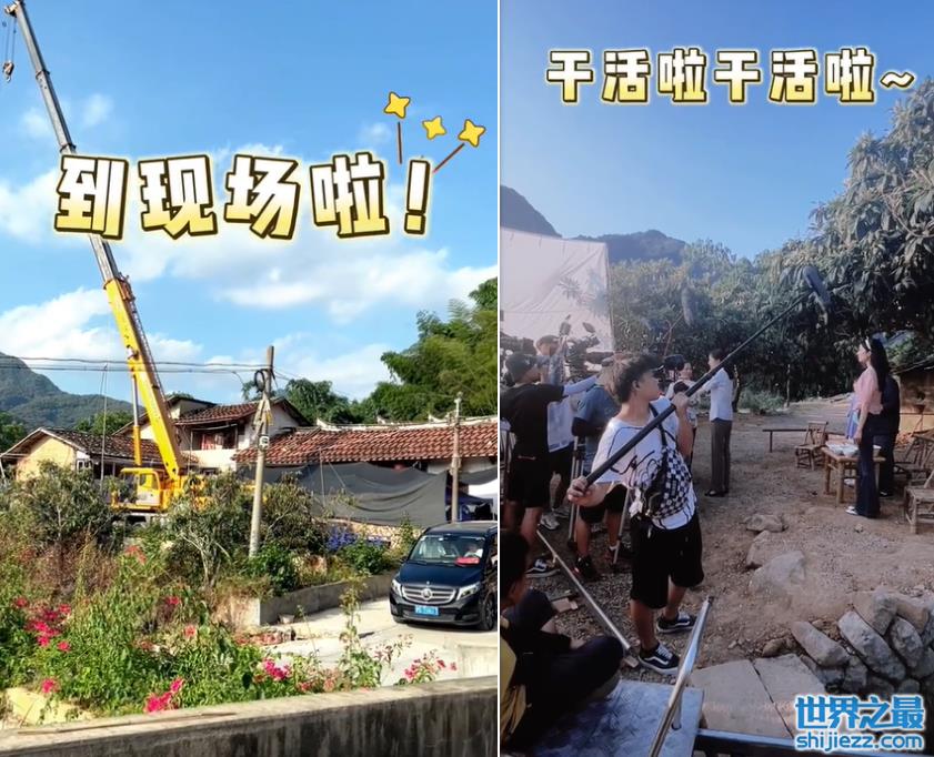 而从童苡萱发布的其他视频来看,剧组拍摄地点在一个村子里面,空间略微狭小逼仄,地面也是坑坑洼洼的土路,一群工作人员就把拍摄机器架在土路上进行拍摄,看起来摄像大哥们也是很不容易。