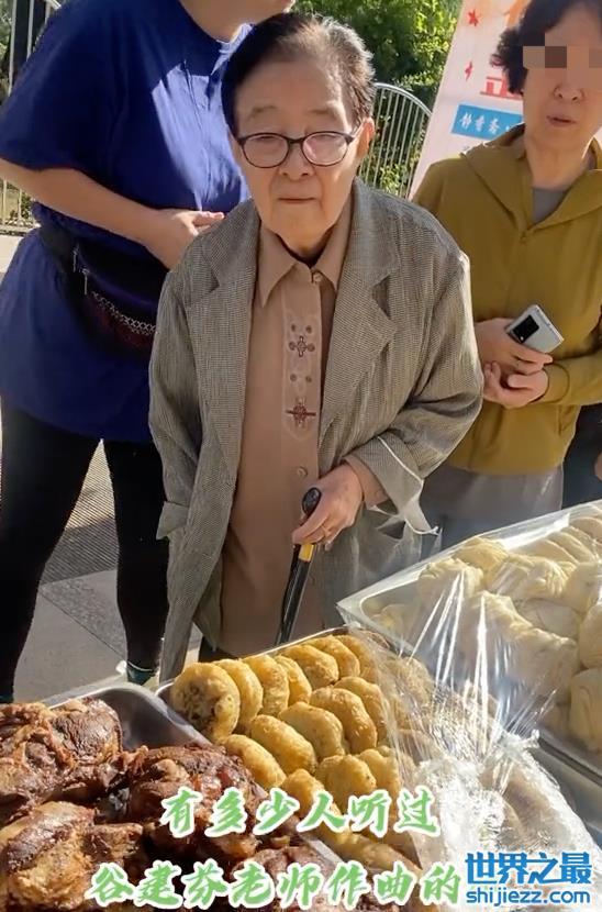 87岁谷建芬街头小摊买牛肉!拄拐杖走路身形佝偻,打扮朴素精神矍铄 ...