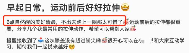 近日,歌手孙悦在个人社交平台上分享了自己清晨6点起床,出门跑步的运动视频,并录制了一期个人常用的拉伸动作分享给大家,引起网友热议。