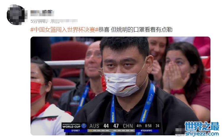 姚明看女篮比赛口罩太小!脸部被绳子勒出痕迹,体型巨大十分抢眼 ...
