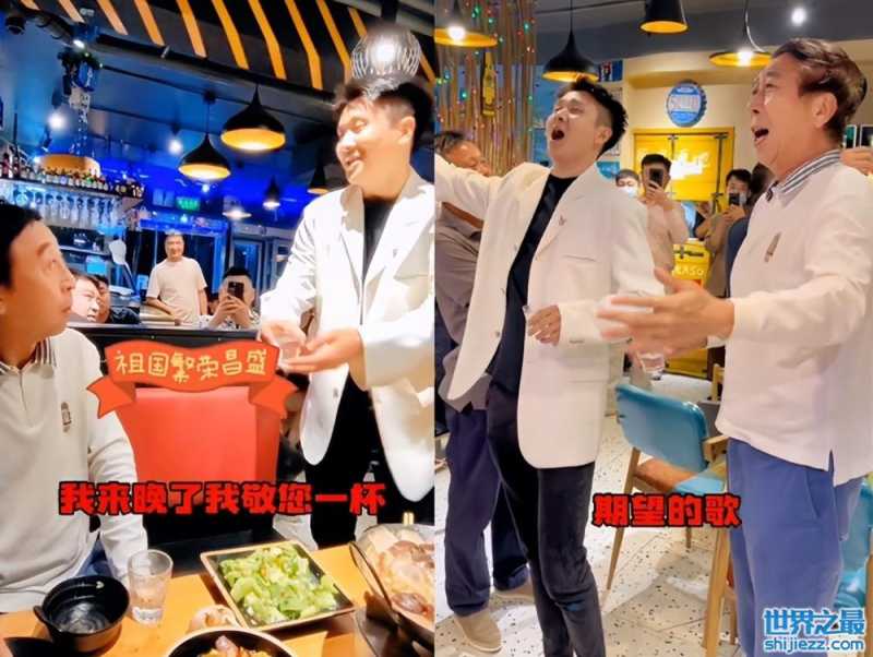 然而,冯巩却认为正值国庆,他应该和弟子一起为祖国母亲敬酒。于是两人便端起酒杯,站起身来,分外投入和深情地面对着满饭馆的人为大家献唱一首《我和我的祖国》。唱到高潮的部分,冯巩也是手舞足蹈,在唱完之后与弟子一起干了手里杯中的白酒,分外豪迈。