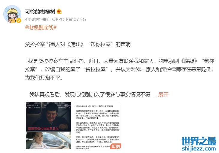 而货拉拉案件的当事人周阳春就《底线》“帮你拉案”发了长文声明,因为电视剧的播出导致大量网友联系到周阳春及家人,大家认为《底线》就他案件的改编已经造成了恶意贬低。