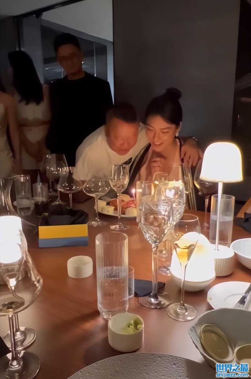 在切蛋糕环节,曾志伟更是直接站起身来,走到女模特身边,搭着她的肩膀,要陪着她一起吹蜡烛切蛋糕。而吹完蜡烛后,曾志伟与小模特两人更是来了个深情热吻,双手相扣,场面十分刺激。而在场的其他宾客对这个场面却是见怪不怪,想必这就是他们朋友之间的相处方式吧。
