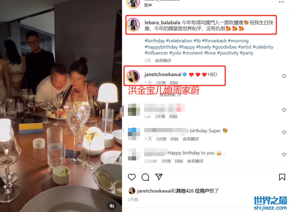 这位女模更是在社交平台配文表示,今年很幸运能够同奖门人一同吹蜡烛,还说今年自己的生日愿望是世界和平,看来颇为感谢曾志伟此番捧场,言语之间透露着兴奋与喜悦。而细心的网友也在这位模特的评论区发现了洪金宝的儿媳妇周家蔚,似乎她跟黎峇菈也是朋友。