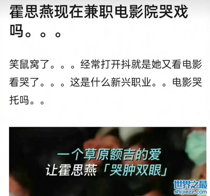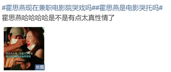 不少网友都表示霍思燕怎么总是在电影院哭,看什么都能哭,这是在电影院找了个兼职 吗?