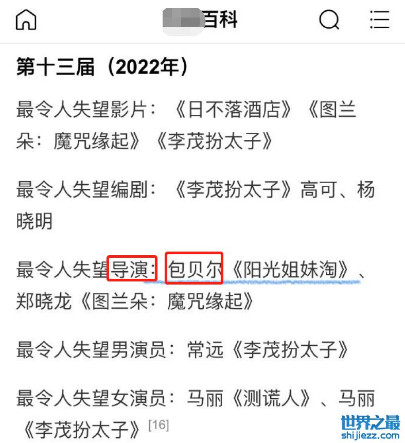 在网友提供的另一张截图中显示,包贝尔凭借着《阳光姐妹淘》的确是被分类在了“最令人失望的导演”一栏,但具体是由什么人来评判,其实并没有详细公开展示给大家知晓,作为当事人的包贝尔发出质疑也能被理解。