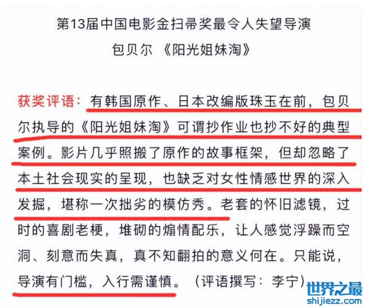 不仅如此,包贝尔之前拍的《胖子行动队》也得过金扫帚奖,当时他并没太多发言,但如今再度上榜,作品质量也没有进步,真应该反思下自己。
