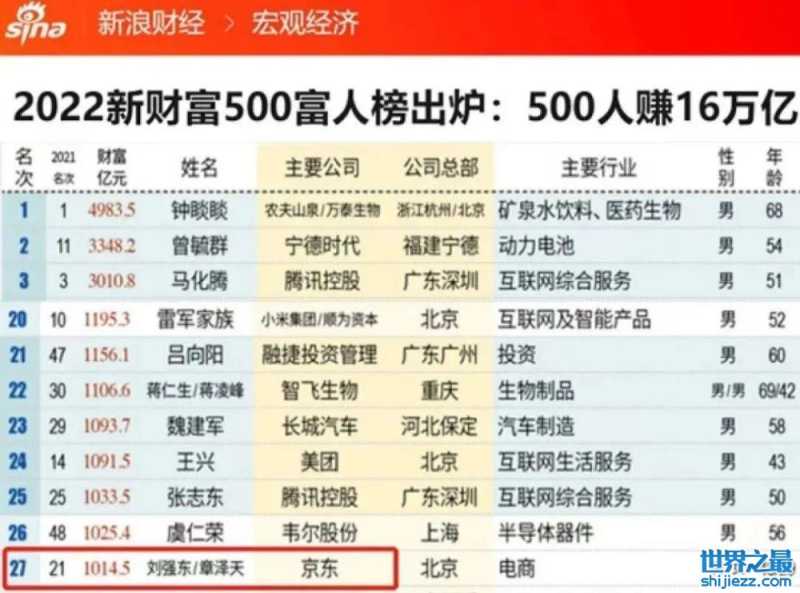 今年“新财富500富人榜”中,刘强东章泽天夫妇以1014.5亿元的财富位居榜单的第27位。