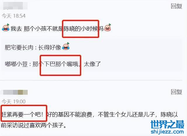 评论区网友们纷纷表示,儿子星星长得好像爸爸,尤其是下巴和嘴,那简直就是缩小版的陈晓。更有兴奋的网友直接在评论区开始“催生”,希望双陈夫妇能够再生一个,觉得陈晓和陈妍希俩人基因那么好,可不能浪费。