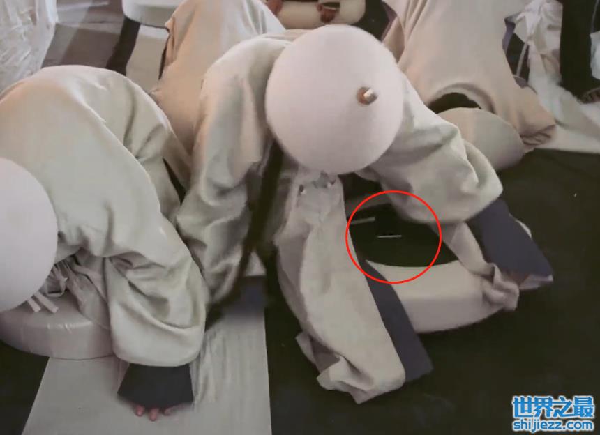 跟着阿哥侧仰的动作,垫子上藏得严实的手机,就这样露了出来。估计开拍前,演员顺手一塞,却忘了下面的剧情会被踹,这一突发事件,就让穿越的手机露了馅。