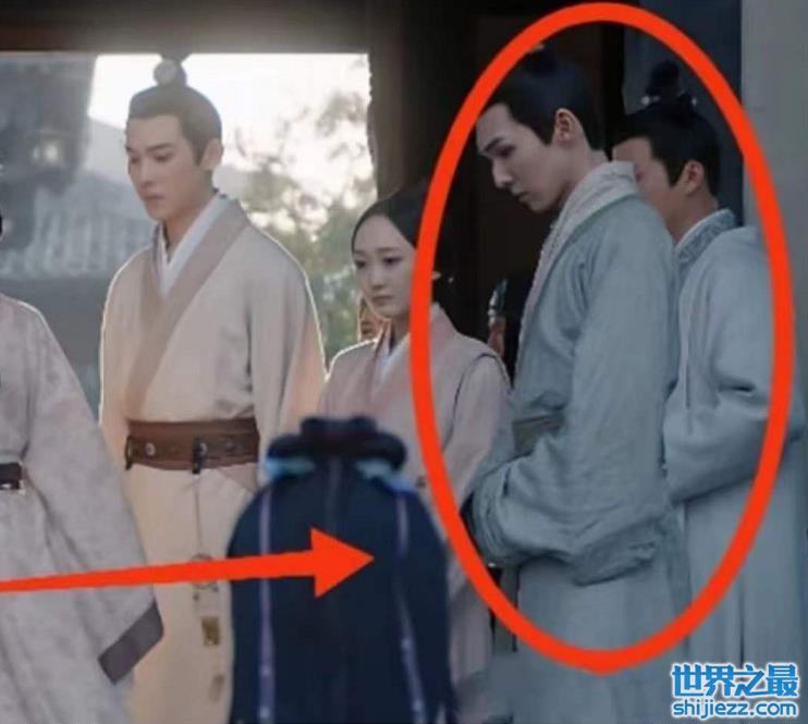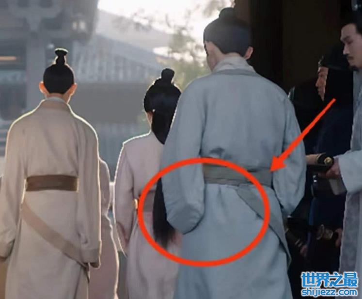 切近景一看,就更加明显了,本该平整的腰带,凸起了一个手机形状。想必开拍前,孙秀才还在网上冲浪呢,开拍后因为古装没有兜,就草率地藏在了腰带里......结果被电视前的观众逮了个正着,真是有辱斯文啊。