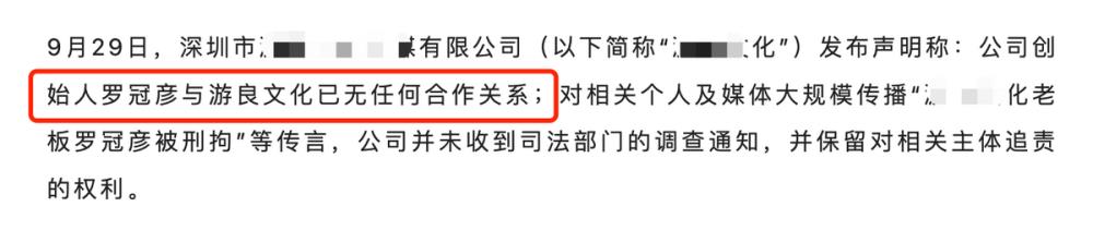 紧接着,该公司也发表了严正声明,重点有以下几条。第一,罗冠彦已经将经营权转交于高管团队及董事会,罗冠彦和该公司已经没有任何关系。第二,公司没有收到相关部门的调查通知;第三,希望网络上的媒体们、达人们针对公司的不实谣言全部删除。