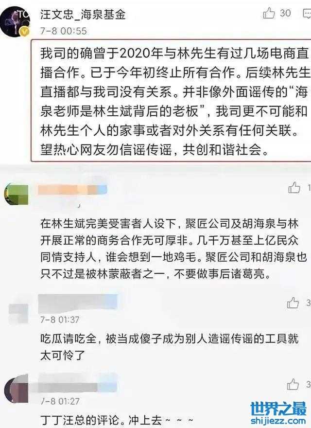不过胡海泉称,自己只是和林生斌合作过几次直播而已,并且早就终止了所有的合作。