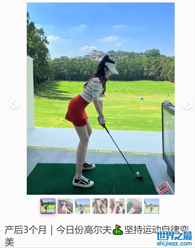从晒出的照片中可以看到,当天现身高尔夫球场的她穿着专业,上身一件polo衫搭配红色超短裙裤,完美显露出了自己超长得美腿。手拿球杆的她姿势也摆得很是专业,还特地凹了一下造型,秀出自己的翘臀,身材曲线相当完美。