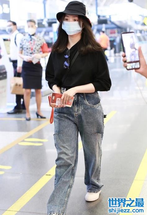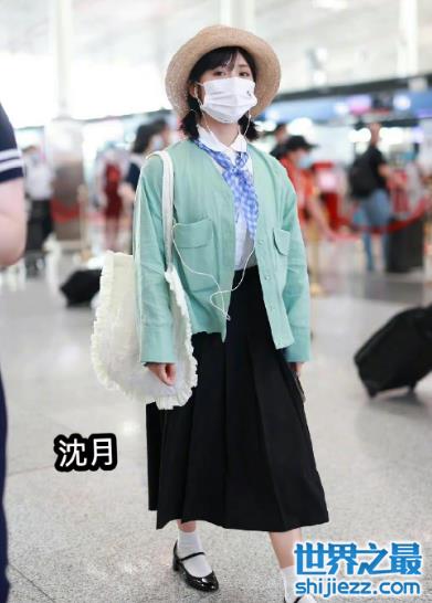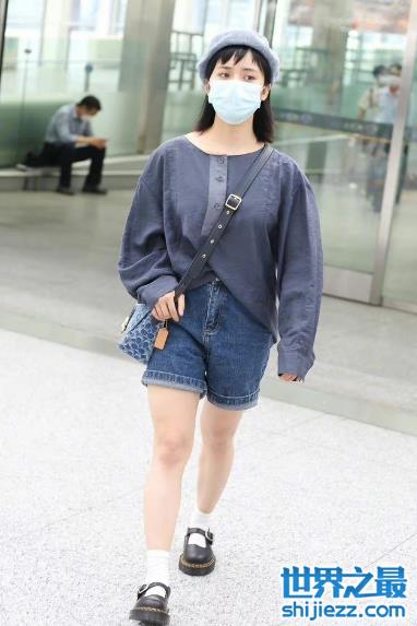 还有沈月在机场的露腿图。宽大的圆领上衣显得沈月肩膀很宽,下半身的牛仔短裤显得大腿非常粗,再加上额头的狗啃刘海,沈月这一套简直是将元气耗了个干净,还显得有点儿油腻。