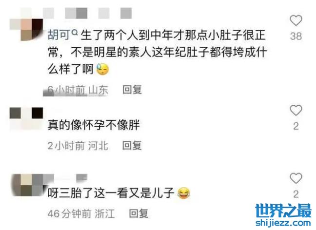 一些网友们猜测她不会是又怀三胎了吧,但也有网友担心胡可如果再怀孕,估计以后工作量就会更加减产了。