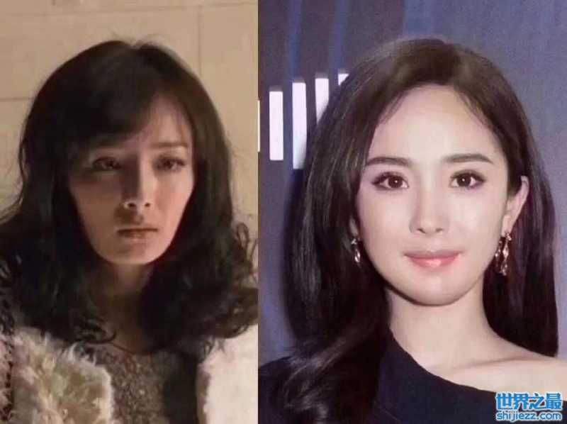 但伴随脸型变窄变精致而来的还有后遗症,从《宫》的剧照中就能看出,当时杨幂的脸型直接从方脸变成了多边形。