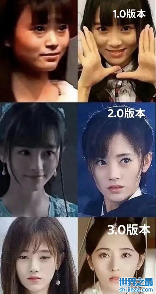 后来鞠婧祎经历了3个阶段, 脸型直接从面中凹陷的大方脸,变成了精致无比的小方脸,她的脸蛋从1.0阶段过渡到3.0阶段,中间还确实是经历了不少刀。所以有不少网友都调侃鞠婧祎其实是“四千刀美女”,并不是什么”四千年美女“。