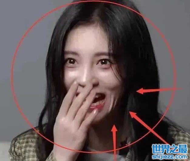 她的脸不能做大幅度的表情,一大笑脸就有崩塌的感觉,虽然她用手挡住了脸,但从侧面还是能看到,她的脸是歪的,侧面的肉一条一条的挂不住。