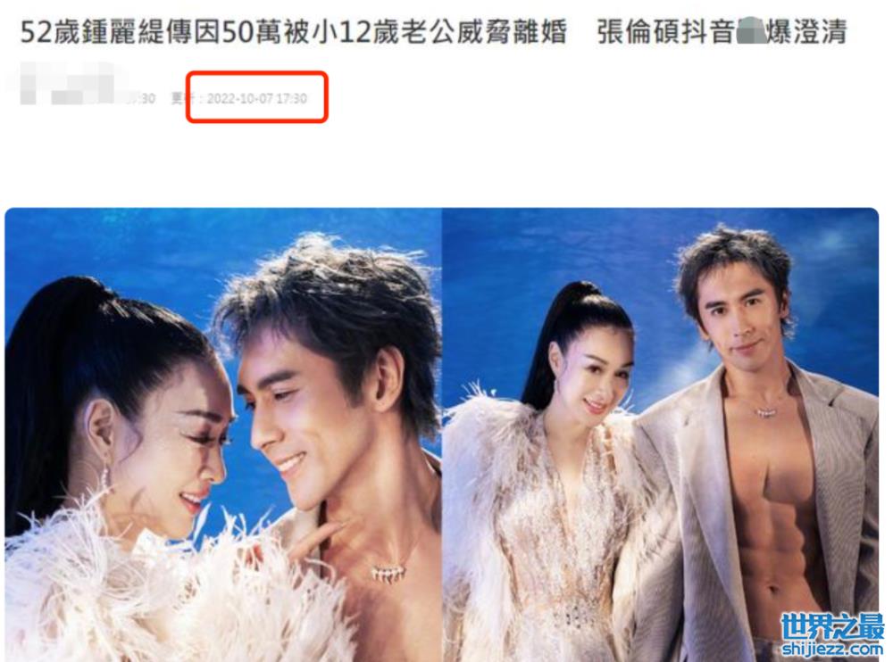 最近,一个自媒体账号将以前钟丽缇参加综艺的片段,配上一段文案剪辑在一起,说夫妻俩为了50万要离婚,还说张伦硕脾气不好,对钟丽缇很糟糕。