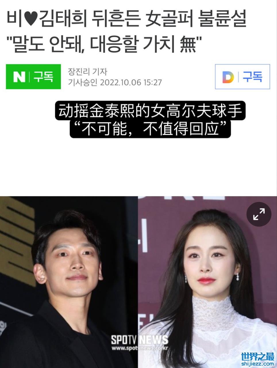 但最近Rain被曝婚内出轨,女方是某高尔夫球手,外形神似金泰熙,因此网友调侃:Rain在收集金泰熙的周边。