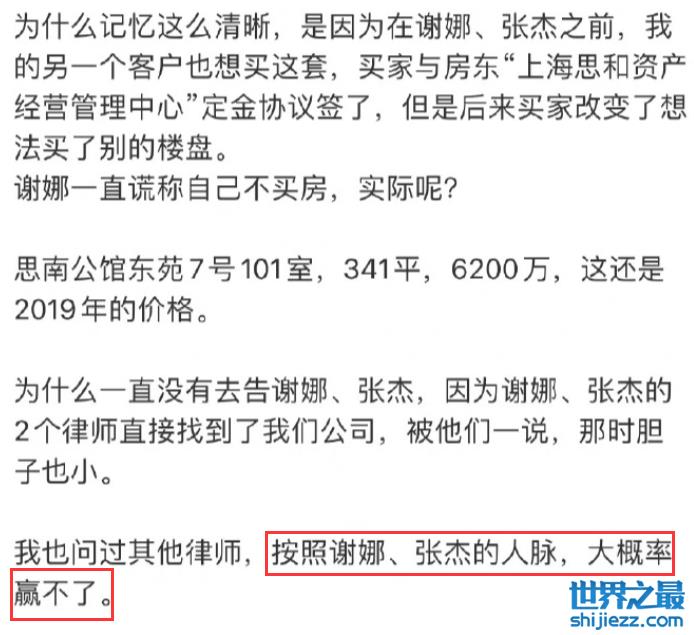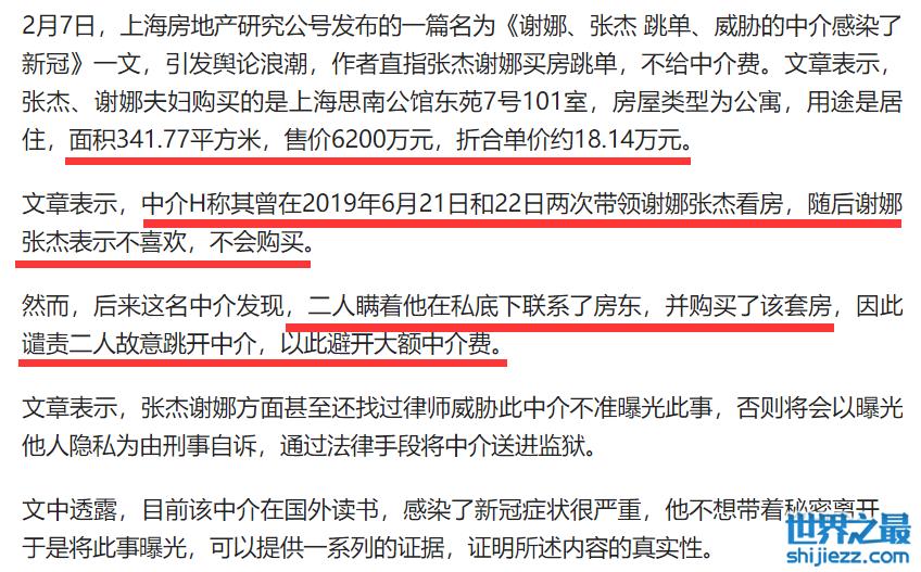 据悉,整件事还要追溯到今年2月初,身为房产经纪人的霍某当时在社交平台发文,表示2019年6月,自己曾带张杰与谢娜夫妇到上海思南公馆看房,并且还前后去了两次。