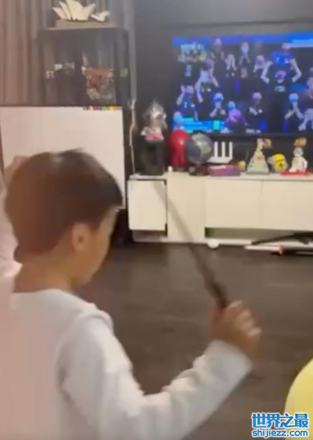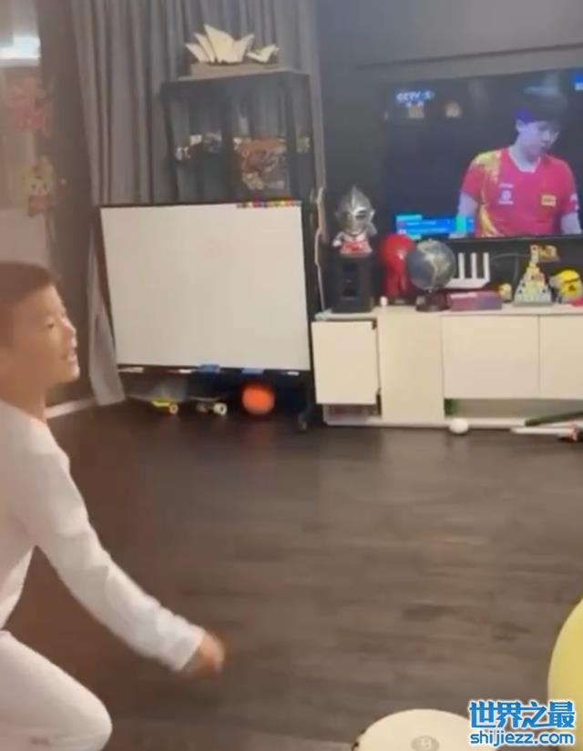 吴京儿子家中为国乒加油!穿秋衣卖力打鼓助威,兴奋大喊嗓子嘶哑 ...