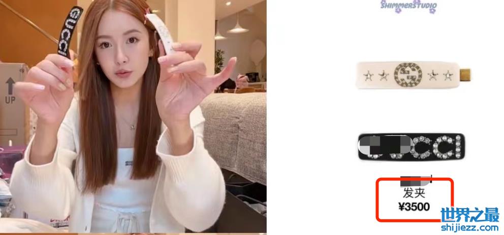 比如这个某奢侈品牌的小发夹,一对就要3500元,确实是普通人难以企及的。张子萱还将其和另一奢侈品的夹子做对比,直言这次买的设计更合理。