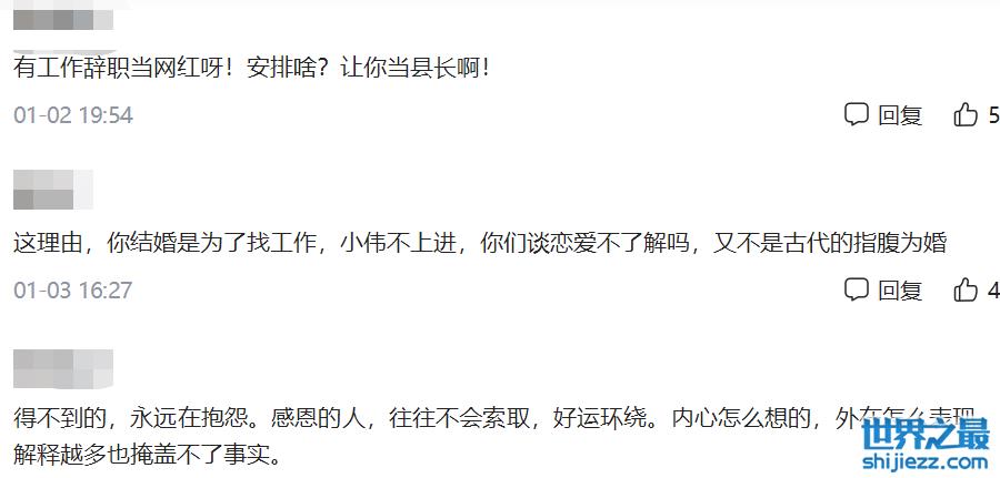 额,虽然,但是……即使不给她安排工作,在大衣哥身边随便找个差事,或者不上班,也不会缺钱花吧,何必非要去做主播呢?而且离婚后还频繁提到对方,难道不是为了流量?既然不喜欢做主播,那就退网继续当护士啊。