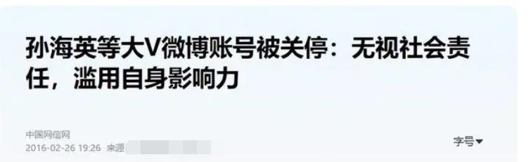 其实,孙海英已不是第一次被社交平台封禁了,早在6年前他就被官方通报因“无视社会责任,滥用自身影响力”而关停了账号。简单来讲,就是这位老戏骨总是口无遮拦,随意散播一些不当言论。