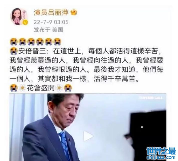 比如她公开发文悼念安倍晋三。